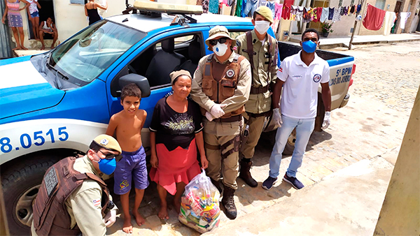 A necessidade de famílias dos distritos, povoados e centro do município de Tucano, sertão baiano, durante o surto do novo coronavírus (covid-19), tocou os corações do efetivo da 2ª Companhia do 5º Batalhão da Polícia Militar (BPM/Euclides da Cunha). Sensibilizados, eles e um grupo de moradores arrecadaram R$ 20 mil em cestas básicas e entregaram os alimentos na sexta-feira (3). Duzentas famílias carentes foram apoiadas na ‘força-tarefa’ que contou com a doação de toda a população daquele município. Segundo o comandante da 2ª Cia do 5º BPM, capitão Duarte Gomes da Silveira, a campanha foi divulgada através das redes sociais e rapidamente viralizada entre a população. “A nossa ideia é apoiar os que mais precisavam. Divulgamos a composição de uma cesta básica juntamente com dois números de Whatsapp. Um para aqueles que gostariam de doar e outro para as famílias que precisavam receber os donativos. Foi assim que conseguimos filtrar e entregar os kits”, contou o oficial.