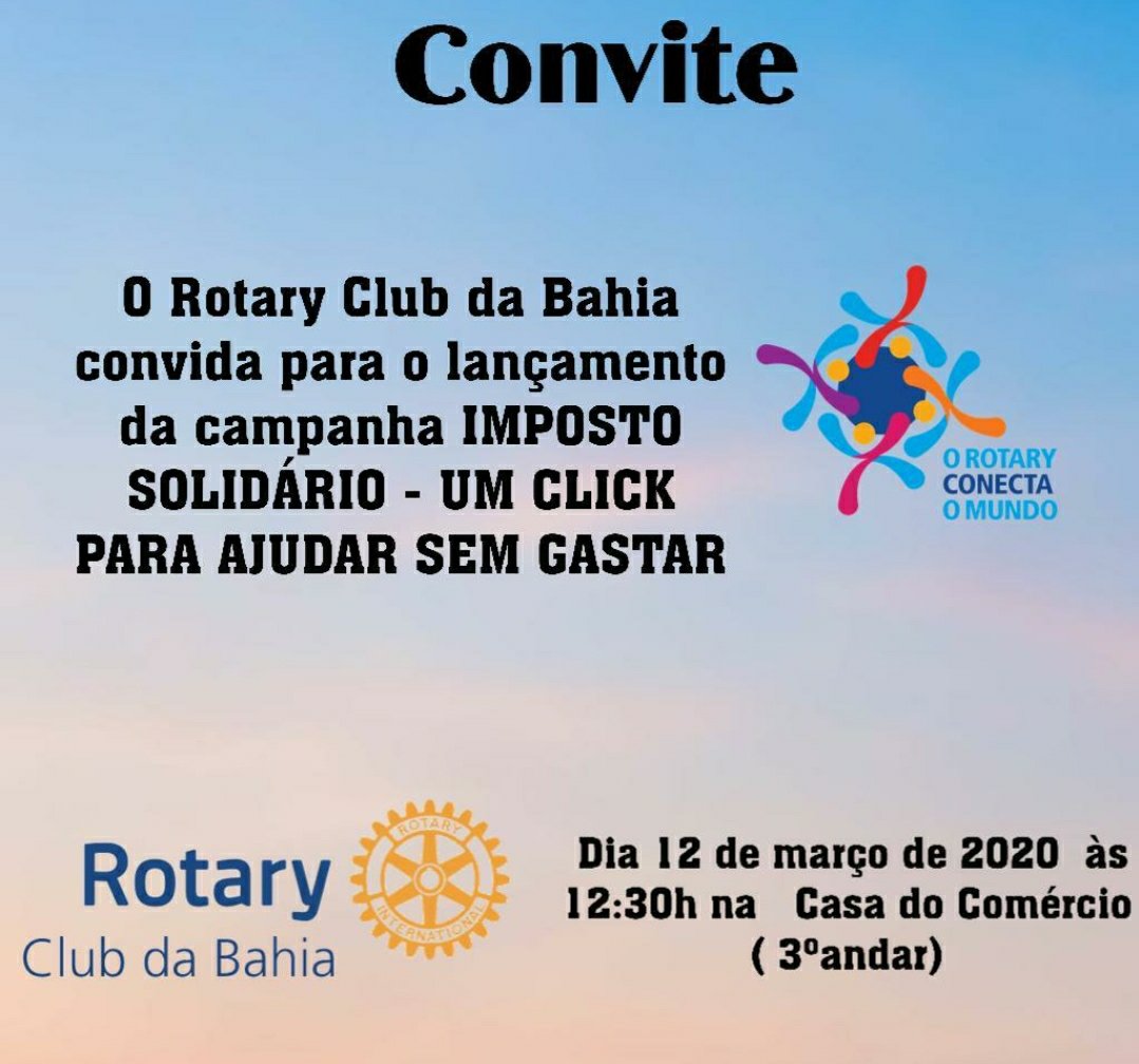 O Rotary Club da Bahia e o Tribunal de Justiça da Bahia estão juntos lançando no próximo dia 12 de março uma campanha para sensibilizar os contribuintes do Imposto de Renda a se mobilizarem para investirem em projetos que contribuam para a proteção e defesa dos direitos do idoso, da criança e do adolescente do nosso estado.