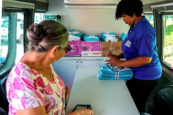 O serviço funciona em uma van adaptada, das 9h às 16h, no campo de futebol da Rua Almirante Mourão de Sá, em frente à Liquigás. Nesta primeira semana, serão 1,1 mil escrituras entregues já com o nome dos beneficiados; além disso, outros 3,5 mil moradores devem solicitar a regularização. Para receber o título, é necessário apresentar um documento oficial de identificação.