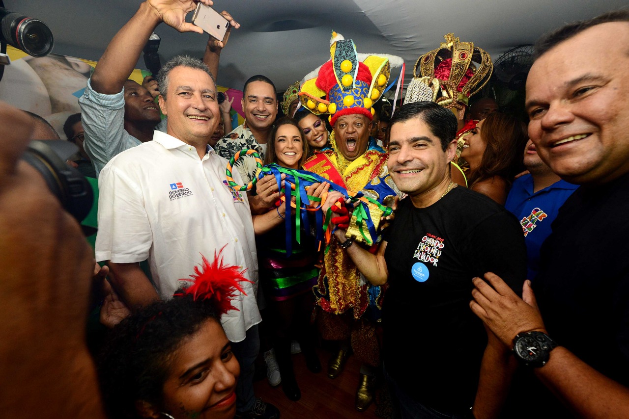Além do Rei Momo, que pesa quase 120 quilos, estavam presentes os ajudantes dele e a Rainha e Princesas do Carnaval, Jessie de Oliveira, Leila Figueiroa Santiago e Iasmin Oliveira Carneiro. “A partir de agora só tem uma autoridade na cidade, que é o Rei Momo”, brincou ACM Neto.