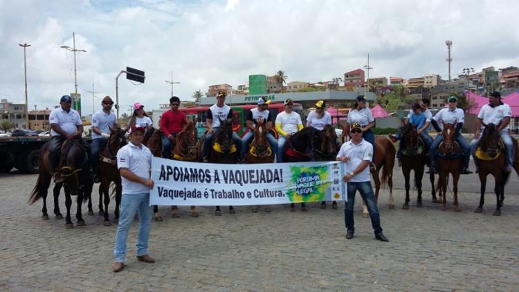 O grupo, que finalizou o ato após chegar ao parque, carregava faixas e carros de som em protesto contra a proibição das vaquejadas em todo o território brasileiro após decisão do Supremo Tribunal Federal (STF) pela maioria dos votos dos ministros do colegiado.