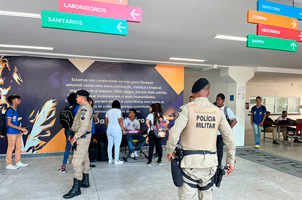 Equipes da Ronda Escolar da Polícia Militar estão espalhadas pelas instituições de ensino da capital baiana, nesta quinta-feira (20), para coibir qualquer ameaça. Vinte instituições estão sendo acompanhadas de perto. A intensificação do policiamento escolar tem o objetivo de gerar tranquilidade para pais, alunos, professores e diretores, como contou a major Maria da Soledade, comandante da Ronda.