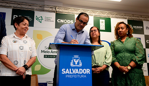 Na Semana do Meio Ambiente, Salvador renovou, nesta segunda-feira (2), sua participação no Programa Cidades Sustentáveis (PCS), iniciativa que incorpora sustentabilidade urbana nos âmbitos social, ambiental, econômico, político e cultural junto ao planejamento municipal. O prefeito Bruno Reis assinou o documento durante a abertura do 1º Encontro para ODS da Região Metropolitana de Salvador, realizado no Arquivo Público (Comércio), e reforçou o compromisso da cidade com a agenda.