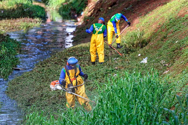Secretaria Municipal de Manutenção (Seman) – As equipes realizam serviços de microdrenagem, como limpeza de caixas coletoras, desobstrução de galerias de drenagem, recuperação de escadarias drenantes, poda e supressão de árvores; e ações de macrodrenagem, como a dragagem de 70 canais entre julho de 2025 e fevereiro de 2026 – o equivalente a cerca de 20,7 quilômetros.