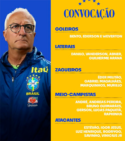 Entre os lembrados estão três jogadores que têm se destacado no futebol brasileiro, Estêvão, do Palmeiras, e Igor Jesus e Luiz Henrique, ambos do Botafogo. Quem acabou ausente foi o jovem Endrick, do Real Madrid (Espanha).