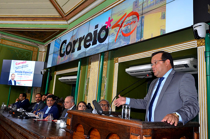 Os 40 anos de história na imprensa local do jornal Correio foram recontados em sessão especial da Câmara Municipal, na noite desta segunda-feira (15). A iniciativa foi do vereador Fábio Souza (PHS), que destacou a inovação editorial e a consequente escalada na liderança do mercado, tanto no estado quanto na região Nordeste. Uma performance que permitiu, segundo ele, superar crises e se firmar no topo da concorrência, “fruto de dedicação, responsabilidade, imparcialidade e esforço de toda a equipe”. A sessão foi dirigida pelo presidente da Casa, vereador Geraldo Júnior (SD), que também ressaltou a importante trajetória do Correio como porta voz da população baiana. “O Correio acompanhou as tendências do jornalismo mundial e por isso hoje é o maior do Nordeste e um dos maiores do Brasil em circulação”, observou.