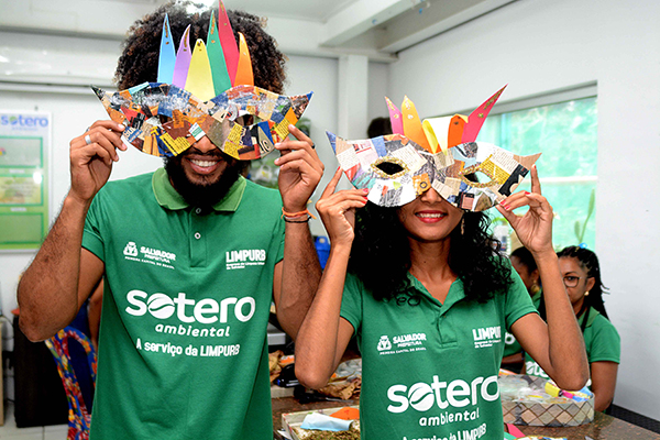 Carnaval é sinônimo de confete para todo lado. O problema é que o artefato feito de papel demora de três a seis meses para se descompor, polui as águas e, se jogado nas ruas, pode entupir os bueiros e redes de esgoto. Com intuito de preservar o meio ambiente, a Empresa Sotero, prestadora de serviços da Limpurb, criou confetes naturais feitos de folha secas e máscaras produzidas com material reciclado.