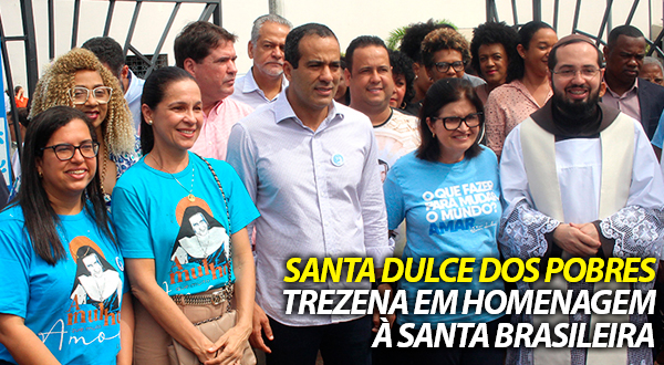 O prefeito Bruno Reis participou, nesta terça-feira (1⁰), da missa que marcou a abertura da Festa de Santa Dulce dos Pobres, realizada no santuário da religiosa baiana, no Largo de Roma. A trezena em homenagem à primeira santa brasileira conta com uma programação extensa, até o dia 13 de agosto, quando é celebrado o Dia de Santa Dulce. As atividades previstas envolvem apresentações diárias de peças teatrais, exibição de filmes sobre a primeira santa brasileira, além de atrações musicais e quermesse.