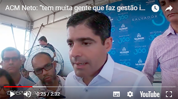 ACM Neto critica péssima gestão de parte do setor hoteleiro em Salvador. Assista.