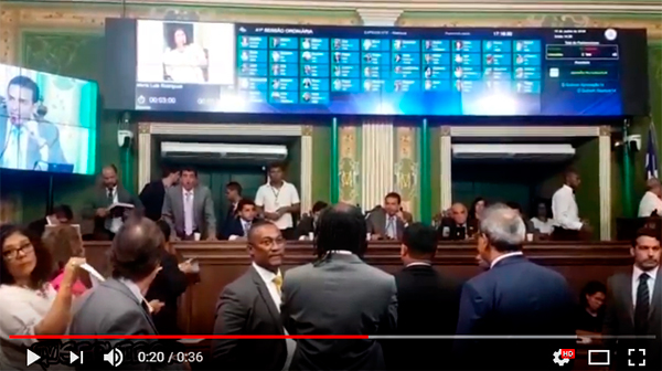 Minutos depois de começar a sessão plenária que tratou do Projeto de Lei 01/2018 sobre gratificações para os servidores municipais, ajustes na concessão de licenças para tratamento de saúde, altera jornadas de trabalho, incentiva a capacitação e trata da progressão de carreira, entre outros aspectos, os vereadores Aladilce Souza e Hilton Coelho solicitaram ao presidente, vereador Leo Prates, para “lotar as galerias” porque segundo eles “a capacidade de 75 vagas não foram preenchidas”. Leo Prates aceitou a proposta de vereadores. A solicitação teve como consequência cenas lamentáveis. Assista.