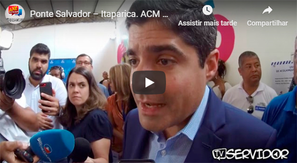 ACM Neto critica licitação da ponte “Salvador – Itaparica” realizada pelo governador petista Rui Costa: “não conheço o projeto. Não há hipótese disso passar por cima da Prefeitura. Não vamos permitir que o Governo endivide as próxima gerações de baianos”. Governo Rui Costa não tem “saúde financeira” para apostar neste projeto. Assista ao tape.