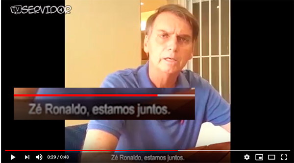 Candidato a presidente pelo PSL, Jair Bolsonaro disse em alto e bom português o que toda a Bahia já sabe: “meu candidato na Bahia é Zé Ronaldo do DEM”. E ponto final. Assista ao vídeo.