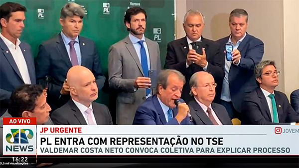 Em entrevista coletiva o presidente do Partido Liberal, Valdemar Costa Neto, apresentou o processo de Representação Eleitoral enviado ao TSE onde solicita a anulação de votos feitos em modelos de urnas UE2009, UE2010, UE2011, UE2013 e UE2015.