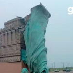 Ventos fortes derrubam Estátua da Liberdade da Havan em Guaíba, Rio Grande do Sul