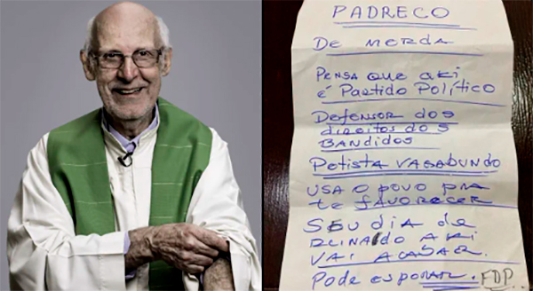 A mensagem não tinha nada de piedosa. Dizia claramente: “seu dia de reinado aqui vai acabar”. Não bastasse isso, o remetente anônimo ainda desferiu ofensas ao religioso, chamando-o de “defensor dos direitos de bandidos”.